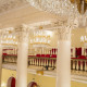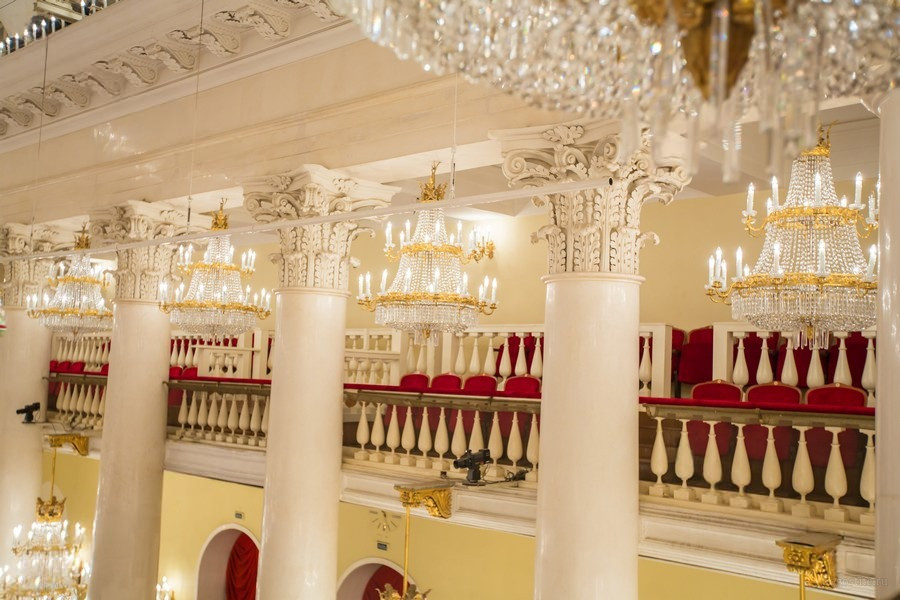 Уникальная архитектура: Пространства, которые завораживают своим величием и атмосферой. Роскошные интерьеры и уникальные антикварные элементы декора, такие как мрамор, золото и хрусталь, создают атмосферу величия и престижа. Более 300 уникальных люстр и бра, создающие элегантное освещение и атмосферу торжественности, среди которых особенно выделяются знаменитые люстры Колонного зала, ставшие символом величия и утонченности этого исторического пространства.