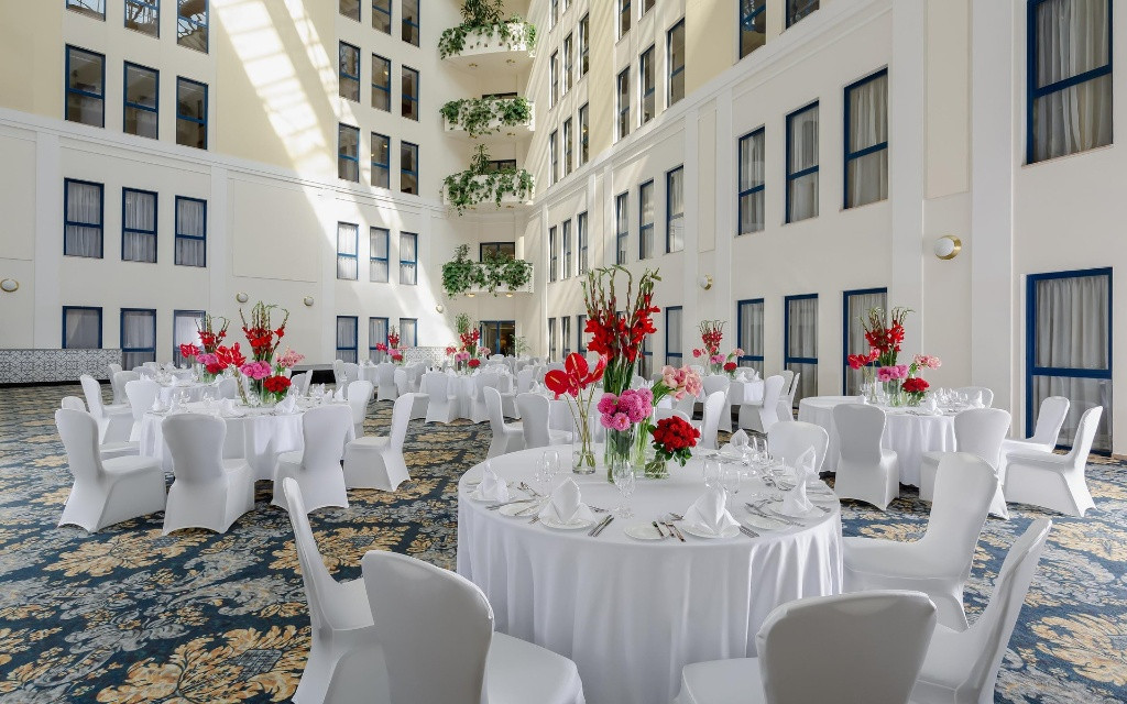 Каждое событие, проведённое в отеле, становится незабываемым благодаря безупречному обслуживанию, индивидуальному подходу и эксклюзивному меню от шеф-повара.