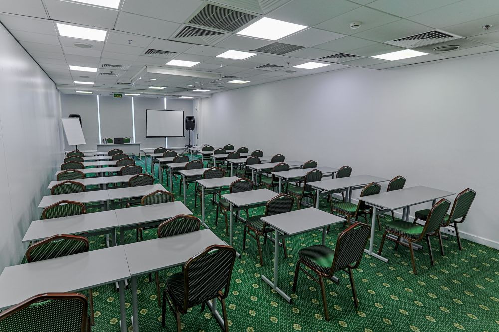 КОНФЕРЕНЦ ЗАЛ № 2 "Сокольники" (82 кв.м) рассчитан на 90 человек рассадкой театром. Современный конференц-зал для продуктивных встреч и событий: