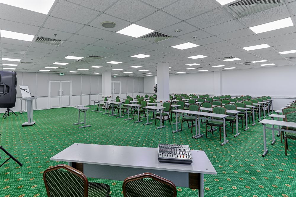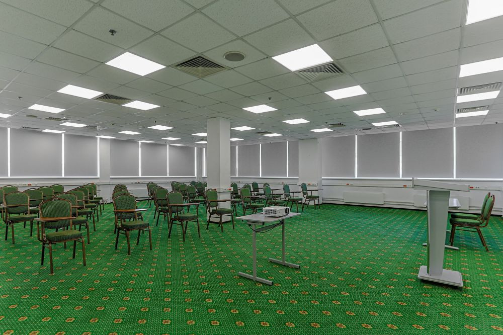 Идеально подойдёт для: масштабных мероприятий, конференций, семинаров. Забронируйте прямо сейчас — комфорт и организованность мероприятия гарантированы. Стоимость аренды конференц-зала: