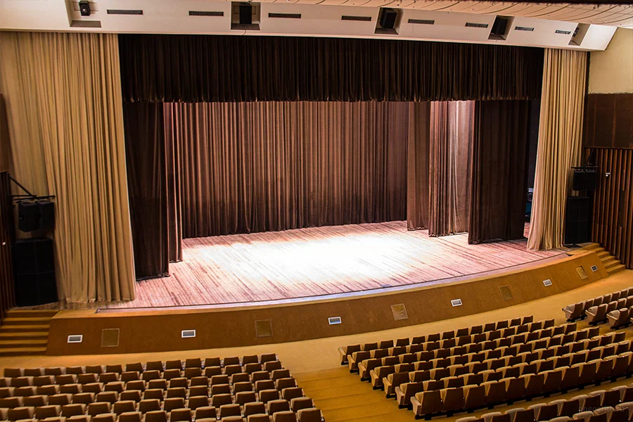 Масштабный зал со сценой, комфортной рассадкой и высокими потолками. Простор и значительные объемы зала позволяют не только улучшить акустику, но и добавить визуального эффекта на концертах, спектаклях и других мероприятиях, где важна зрелищность и комфорт.Оснащен современным осветительным, аудио- и видеотехническим оборудованием, включая систему концертного звукоусиления мощностью 16 кВт и 40 каналами, идеально подходящим для проведения масштабных мероприятий, таких как форумы, конференции, семинары, концерты, спектакли, фестивали и кинопоказы.