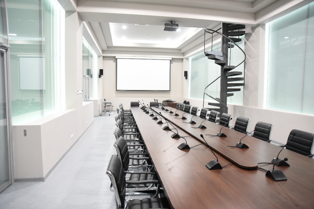 Конференц-зал оснащен современным мультимедийным оборудованием (проектор, экран, микрофон, проч.), отдельной системой кондиционирования, удобной стильной мебелью.