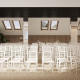 Площадка выполнена в простом, но стильном деловом дизайне. Возможна аренда зала с вместимостью от 20 до 180 человек, что делает его идеальным для проведений встреч, семинаров и корпоративов. Просторный светлый зал с высокими потолками и колоннами, наполненный естественным светом, создает приятную рабочую атмосферу, способствуя активному и продуктивному взаимодействию. При желании могут быть предоставлены стулья с пюпитрами.