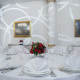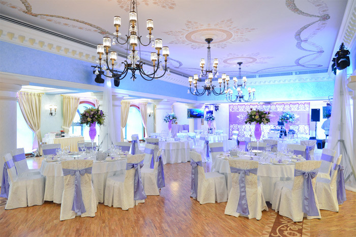 Зал оформлен в элегантном стиле «ар-деко» и идеально подходит для званого ужина, корпоративного ужина или приватного торжества. Интерьер сочетает индийский гранит Madura Gold, живопись прошлого века на стенах, изысканные люстры и бра, создавая атмосферу торжественности и значимости события. Особенности и возможности: