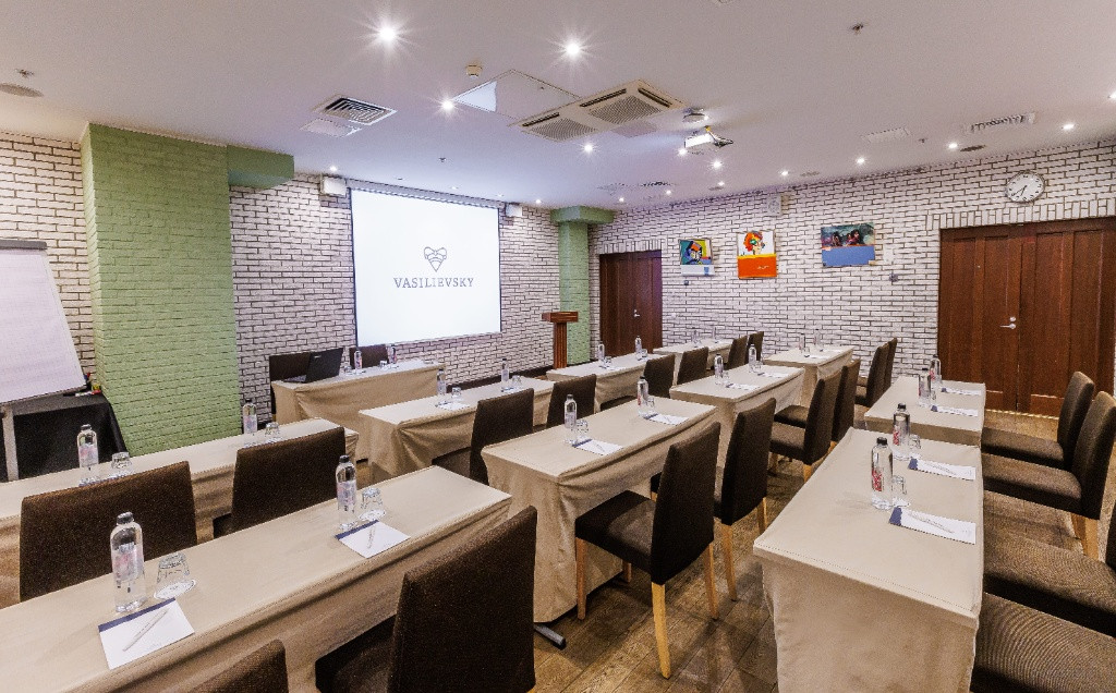 Конференц-зал МАЛЕВИЧ (30 кв.м./на 20 человек). Идеальный выбор для важной деловой встречи или презентации. Аренда зала на 20 человек в отеле VASILIEVSKY HOTEL (бывш. СОКОС ОТЕЛЬ ВАСИЛЬЕВСКИЙ) — это верный путь к успеху. Красивый представительный интерьер, современная мебель и оснащение, великолепный сервис и низкие цены — Ваши гости будут впечатлены великолепным выбором.