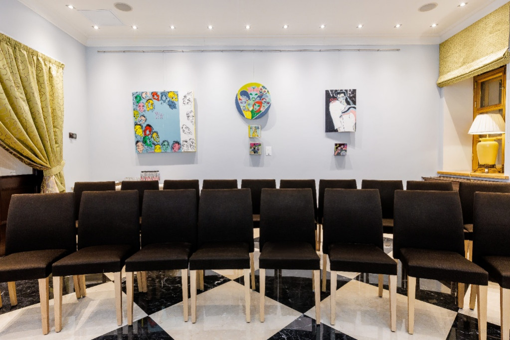 Конференц-зал КУИНДЖИ (27 кв.м./на 15 человек). Небольшой конференц-зал отлично подойдет для деловых встреч, семинаров, переговоров, презентаций. Стены украшены произведениями современного искусства. В зале на 15 человек представительная мебель, прекрасное оснащение. Аренда зала в Санкт-Петербурге в центре рядом с метро — продуманный выбор для успешного мероприятия.
