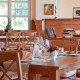 РЕСТОРАН (200 кв.м./на 80 человек). Очень уютный зал, наполненный светом. Интерьер выполнен в стиле прованс. Большие окна, настоящий камин, бар, чистый лесной воздух, пропитанный ароматами сосен, мебель из натурального дерева - здесь Вы погрузитесь в атмосферу непринужденного комфорта и домашнего уюта. Зал на 80 человек можно использовать для проведения как деловых, так и развлекательных или частных мероприятий. Конференция, семинар, презентация, романтичный свадебный банкет, семейный праздник, корпоратив - любое событие Вашей жизни пройдет здесь успешно.