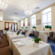 Ресторан РОМАНОВ (120 кв.м.) рассчитан на 50 человек. Площадка для вашего торжества Если вы хотите провести светское мероприятие на высоком уровне, ресторан РОМАНОВ станет безупречным решением. Это элегантный классический зал с торжественным интерьером, который идеально подходит для любого значимого события — корпоративного банкета, фуршета, юбилея, свадьбы, дня рождения. Преимущества ресторана РОМАНОВ: