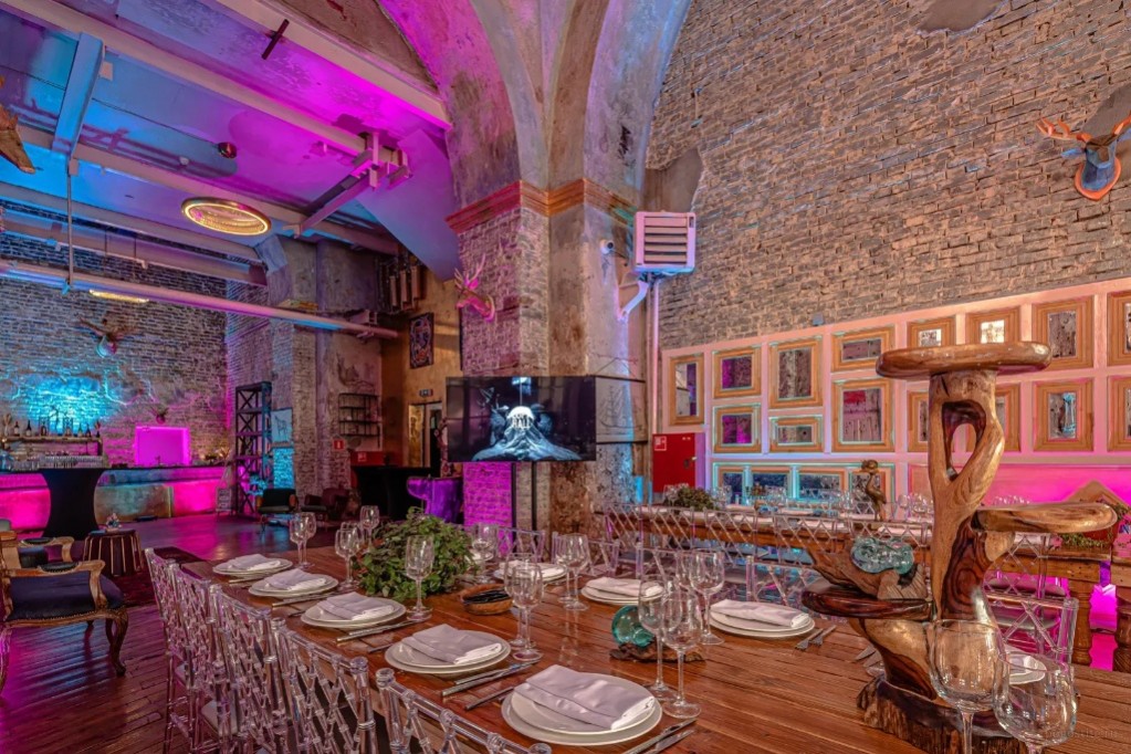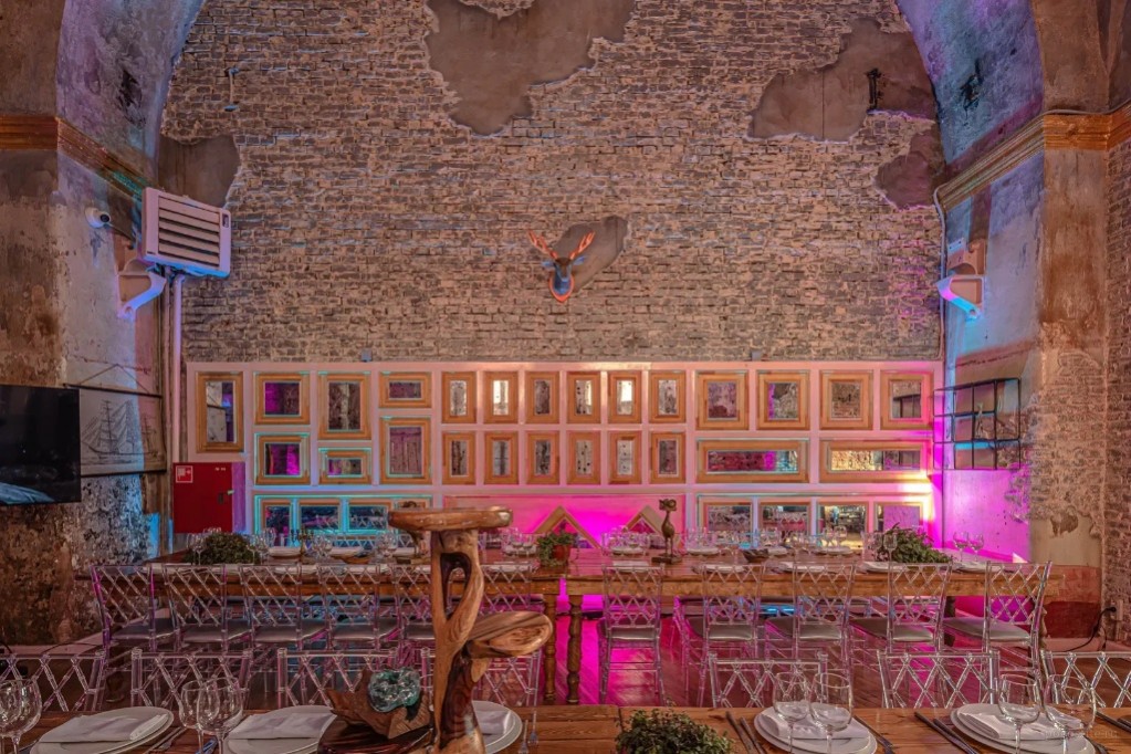 Зал MONTFERRAND HALL (188 кв.м.) рассчитан до 90 человек. Пространство, где история встречается с эксклюзивными материалами, а продуманная архитектура создает уникальную атмосферу для мероприятий Зал расположен под подлинными историческими сводами, которые задают тон и погружают гостей в особенное настроение с первых шагов. Здесь возможно организовать камерные и средние по масштабу события с комфортным размещением гостей. Фактурные стены из красного кирпича и японского черного камня формируют уникальный визуальный образ, сочетающий индустриальную эстетику и восточную сдержанность. Разнофактурный пол добавляет интерьеру динамики и тактильного разнообразия, а множество декоративных элементов избавляют от необходимости дополнительного оформления. Ключевые преимущества: