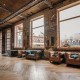 Зал LE CORBUSIER HALL (313 кв.м.) рассчитан до 250 человек. Пространство для мероприятий, где архитектурная строгость встречается с изысканными деталями, а грубые фактуры бетона уравновешиваются благородством натурального дерева и золотым сиянием Площадь 313 кв.м. позволяет проводить как масштабные презентации, так и камерные мероприятия с особым вниманием к стилю. Высокие потолки с грубой текстурой бетона задают тон индустриальному лофту, а французская паркетная кладка на полу добавляет пространству европейской элегантности. Светло-серые стены становятся идеальным нейтральным фоном, который оживают благодаря контрастным вставкам из амбарной доски и акцентам из золотой потали. Ключевые преимущества: