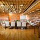 Конференц-зал ТРИ ДЕРЕВА рассчитан на 60 человек. Площадь 99 кв.м. Конференц-зал на 60 человек расположен на 1 этаже. Оригинальный интерьер выполнен в стиле лесного сруба, в отделке стен использованы кипарис, тополь и гранат. Вход в зал на 60 человек через банкетный зал ресторана Мраморный.