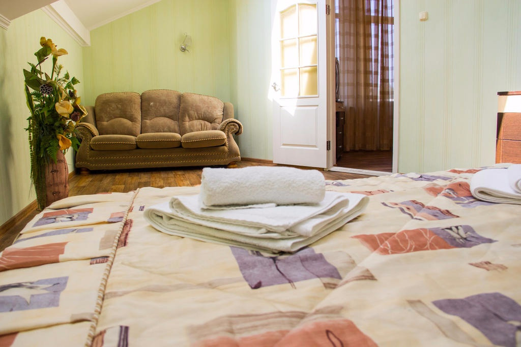 Светлые номера оснащены кондиционером и оформлены в классическом стиле с использованием теплых тонов.