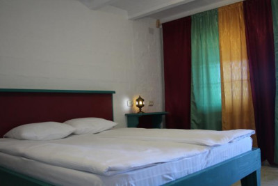 В домах все дышит атмосферой традиционных крымскотатарских домов. Толстые стены из натурального камня и черепичная крыша сохраняют зимой тепло, и прохладу летом. Деревянная мебель ручной работы местного мастера изящна по форме и богата резными деталями. Белые балки на потолке сочетаются со светлыми полами и создают ненавязчивый контраст с тёмной мебелью и многоцветными покрывалами и занавесями. Даже лампы ручной работы уникальны и специально подобраны к каждой комнате. Удобные кровати с ортопедическими матрасами заставят вас позабыть обо всём…