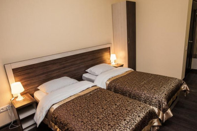 Номера оборудованы двуспальными и односпальными мягкими кроватями, прикроватными тумбочками, настольными бра и индивидуальными ванными комнатами.