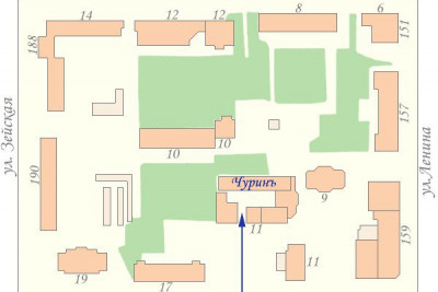 Гостиница "Чуринъ" расположена в самом центре города, вблизи набережной реки Амур (200 м.) и центральной площади города. Клиентам предоставляется прекрасная возможность ознакомиться с достопримечательностями города Благовещенска, посетить Краеведческий музей, Драматический театр, находящиеся недалеко от гостиницы. До центра города - 500 м, до железно-дорожного вокзала - 3 км, до аэропорта - 20 км, до речного порта - 3 км.