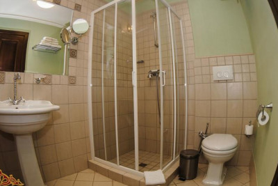 - Комплексно оборудованная ванная (ванна либо душ, набор банной косметики, фен, косметическое зеркало, комплект полотенец)