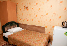 Номер состоит одной комнаты. В номере есть холодильник, телевизор, односпальная кровать. В стоимость проживания входит завтрак. Оснащение номера: холодильник, телевизор, односпальная кровать, стол, стул, тумба прикроватная, шифоньер. Санузел оснащен туалетом и раковиной, косметикой.
