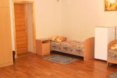 Оснащение номера: холодильник, телевизор, две односпальные кровати, два стула, стол, две тумбы прикроватные, шифоньер.