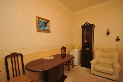 В номерах есть все для комфортного отдыха: кровать, тумба, холодильник, телевизор, санузел, шкаф. В некоторых апартаментах обустроен гостиный уголок. Номера убираются ежедневно, а постельное белье сменивается 1 раз в 3 дня.