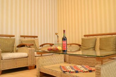 Просторные апартаменты площадью 65 кв.м с 1 спальней, балконом и гостевым санузлом. В номере имеется полностью оборудованная кухня с посудой, холодильником, плитой, духовкой, тостером и электрочайником, ванная комната с душевой кабиной, феном, туалетными принадлежностями и стиральной машиной, гардеробная и гостиная с мягкой мебелью, телевизором и рабочим столом.Также предоставляются гладильные приинадлежности.