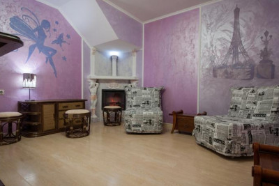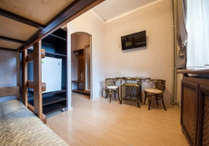 Двухэтажный, четырёхместный, трёхкомнатный, балкон, двуспальная кровать, 2 раскладных кресла, ЖК-телевизор, холодильник, телефон, душ, фен, комплект полотенец, косметические принадлежности, халат, тапочки, разовая экскурсия на 4-х