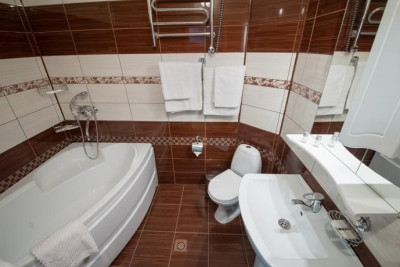 1 двуспальная или 2 односпальные кровати, ЖК-телевизор, холодильник, телефон, душ, фен, комплект полотенец, косметические принадлежности