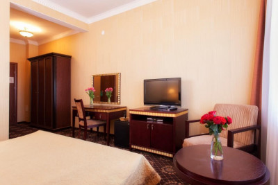 В номере: бесплатный Wi-Fi доступ в интернет, сейф, холодильник, мини-бар, телевизор, телефон, шкаф, просторная ванная комната с феном, халатом, полотенцами и комплектом туалетных принадлежностей.