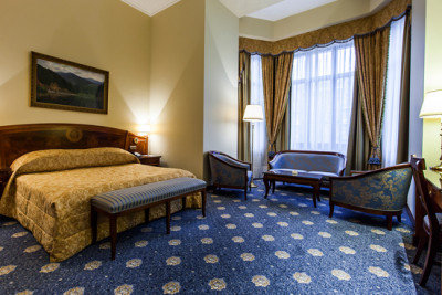 Большой номер с кроватью размера «king-size» или 2 отдельными кроватями, гостиным уголком, мини-сейфом и просторной ванной комнатой. Номера этой категории также имеются на этаже для некурящих.