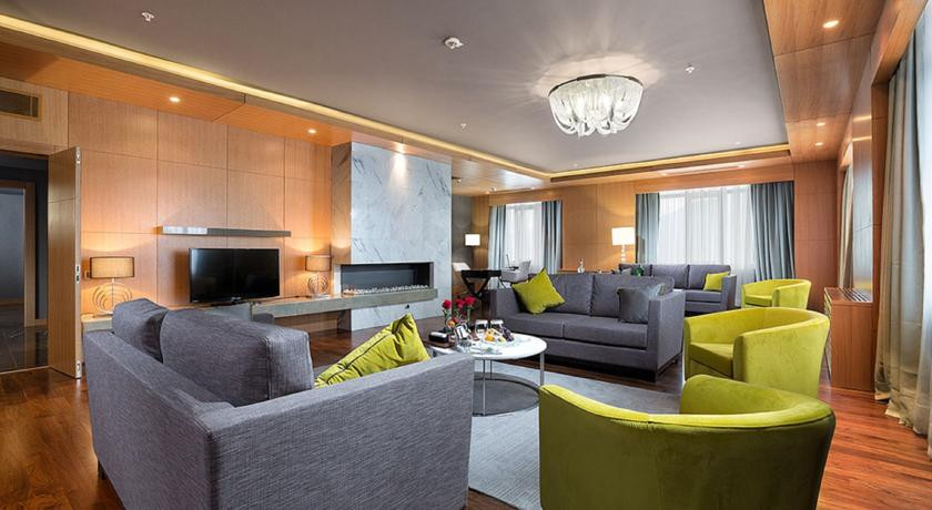 В номере: телефон, телевизор с плоским экраном, сейф, кондиционер, гладильные принадлежности, рабочий стол, камин, мини-бар, мини-кухня с холодильником, посудомоечной машиной, обеденной зоной, электрическим чайником, плитой и кофемашиной.