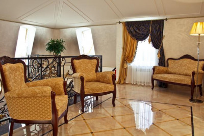 Интерьер номеров оформлен в классическом строгом стиле, с элементами роскоши и игры оттенков.