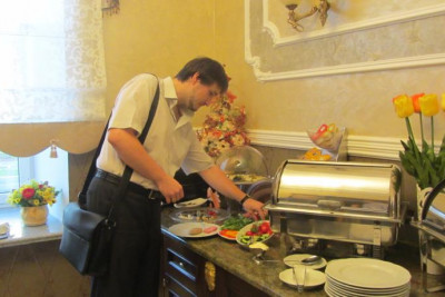Та территории гостиницы работает ресторан с особым старинным интерьером, не похожим на другие рестораны, кафе или бары.