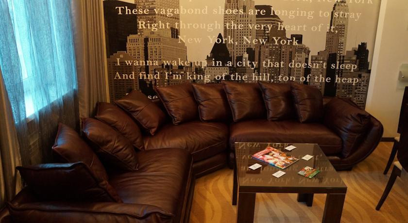 Апартаменты с кафельным или мраморным полом, диваном и кондиционером.