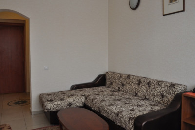 Гостиная и спальная комнаты, двуспальная кровать, раскладывающийся двуспальный диван, телевизор, холодильник, столик, телефон, сейф, электрический чайник, чайный набор, набор посуды, душевая кабина, туалет, набор (шампунь, гель для душа, мыло, шапочка для душа)