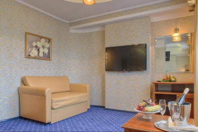 Светлые номера отеля оснащены кондиционером и оформлены в классическом стиле с использованием теплой цветовой гаммы.