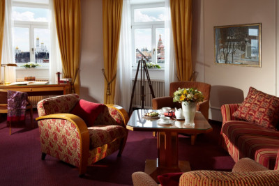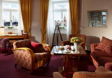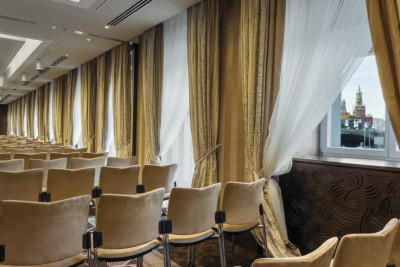 Вид на Кремль, собор Василия Блаженного или вид на город притягивает взгляд сразу, но достоин внимания и изысканный современный интерьер номера: классическая мебель из натурального дерева, мягкие, сдержанные тона обоев.