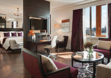 - Роскошный просторный угловой люкс с большой гостиной и обеденной зоной с окнами от пола до потолка, из которых открывается вид на Красную площадь и Кремль.