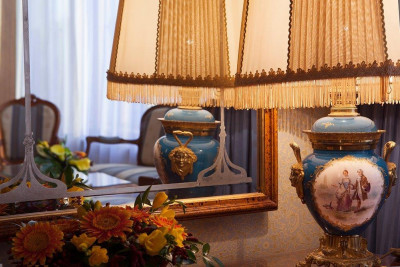 Large, individually designed room with antique décor and living room. Private bathrooms come with a bath, free toiletries, slippers and bathrobes.