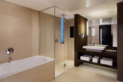- Двухместный номер с 1 кроватью в современном стиле. В числе удобств кондиционер, гостиная и обеденная зоны. Гостям предоставляется право бесплатного посещения фитнес-центра.