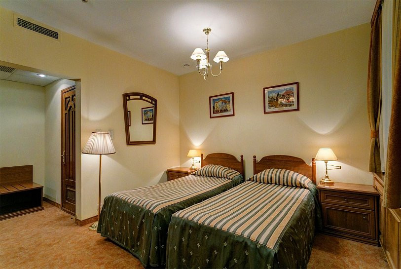 38 номеров мини отеля Сретенская выполнены в традициях русского фольклора: ручная лепнина, настенная роспись, кованые поручни, резная дубовая мебель.