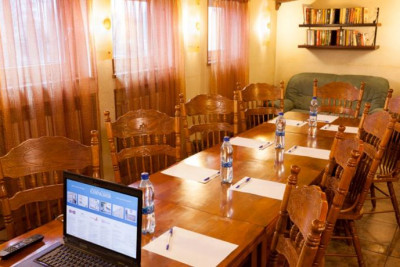 Вместительный банкетный зал поспособствует в организации комплексных мероприятий, деловых переговоров в неформальной обстановке или празднований в широком кругу друзей.