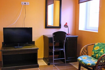 Светлые номера с кондиционером оформлены в теплых тонах и обставлены деревянной мебелью в деревенском стиле. Они оборудовані телевизором с плоским экраном, холодильником, системой отопления.