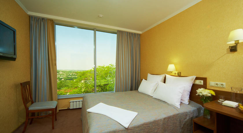 Гостям предоставляется выбор подушек, а из окон открывается панорамный вид на город.