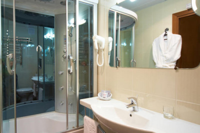 Номер с кондиционером, холодильником, письменным столом и телевизором с плоским экраном и спутниковыми каналами. Ванная комната укомплектована феном, тапочками и бесплатными туалетно-косметическими принадлежностями.