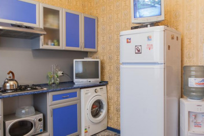 Для гостей оборудована общая кухня, где есть обеденный стол, плита, электрочайник, микроволновая печь, холодильник и необходимые кухонные принадлежности, чтобы гости могли самостоятельно приготовить себе пищу.