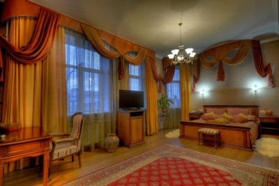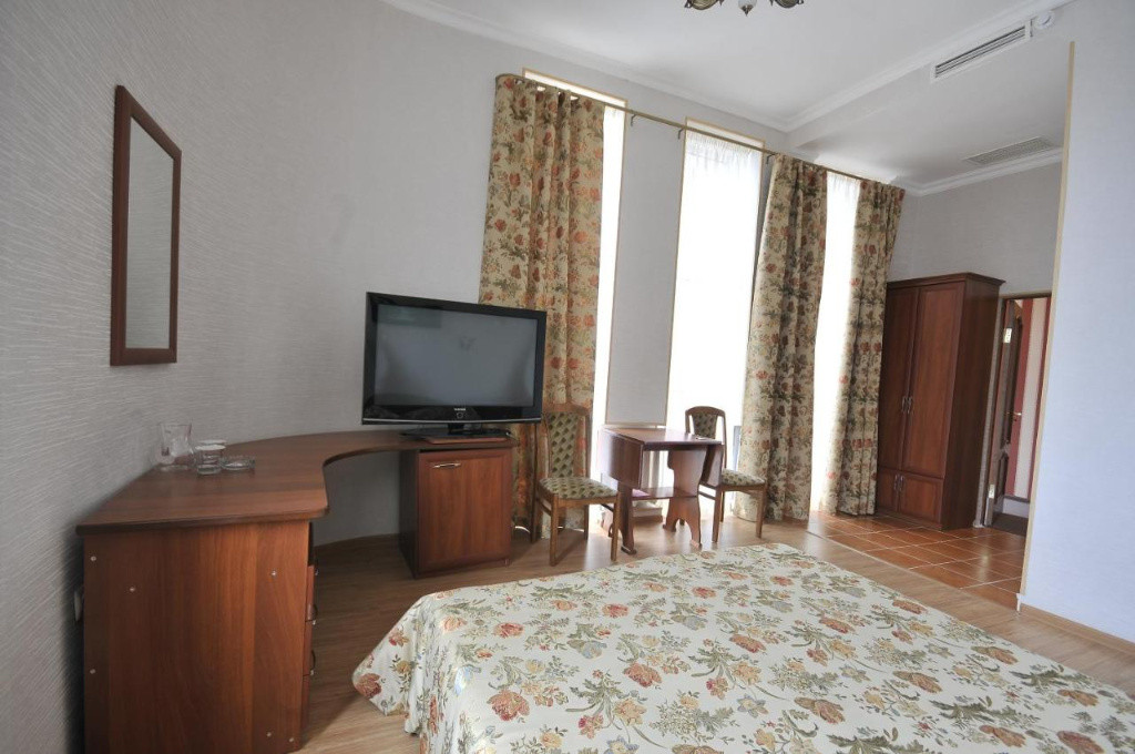 В этом люксе с балконом и гостиным уголком установлен диван, холодильник, обеденный стол и телевизор с плоским экраном и кабельными каналами.
